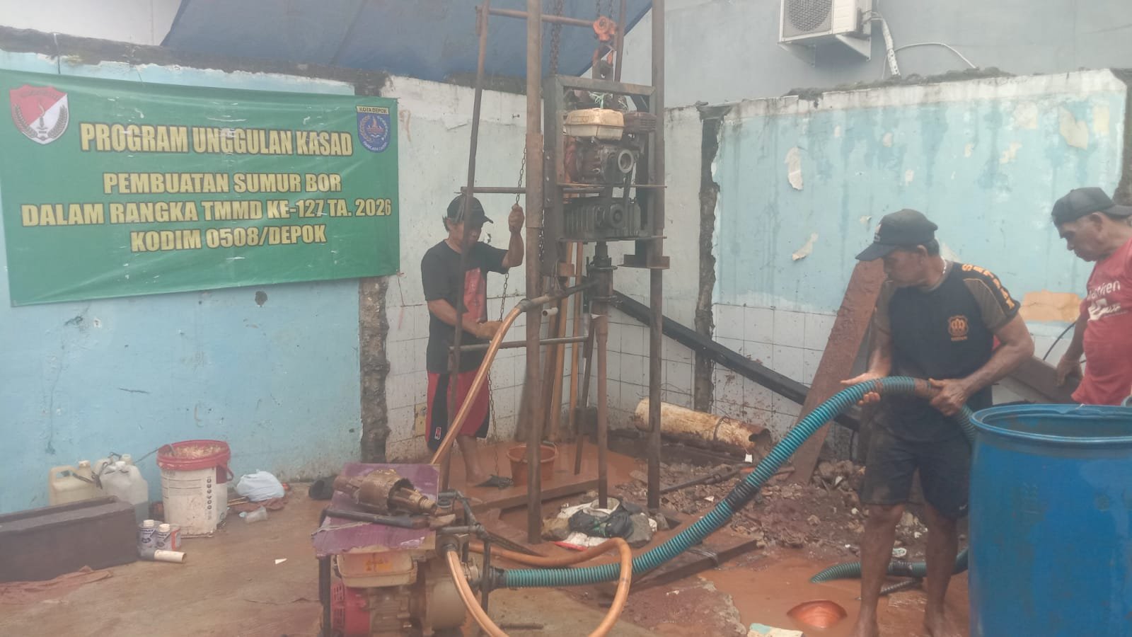 Depok – Memasuki hari ke-26 pelaksanaan TNI Manunggal Membangun Desa (TMMD) Ke-127 Tahun Anggaran 2026, personel Kodim 0508/Depok terus menunjukkan komitmen untuk membangun infrastruktur yang berdampak pada kesejahteraan masyarakat. Pada Minggu (08/03/2026), fokus utama program diarahakan pada percepatan penyediaan akses air bersih melalui pembuatan sumur bor di beberapa lokasi strategis.