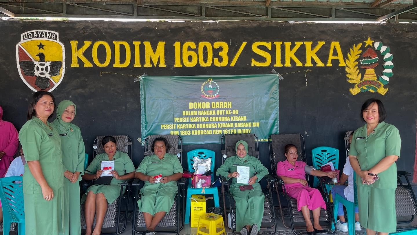Sikka – Dalam rangka memperingati Hari Ulang Tahun (HUT) ke-80 Persit Kartika Chandra Kirana pada tahun 2026, Persit KCK Cabang XIV di Kodim 1603/Sikka mengadakan kegiatan bakti sosial berupa donor darah. Acara tersebut dilaksanakan di Makodim 1603/Sikka yang berlokasi di Jalan Jenderal Sudirman, Kelurahan Waioti, Kecamatan Alok Timur, Kabupaten Sikka pada Kamis, 5 Februari 2026.