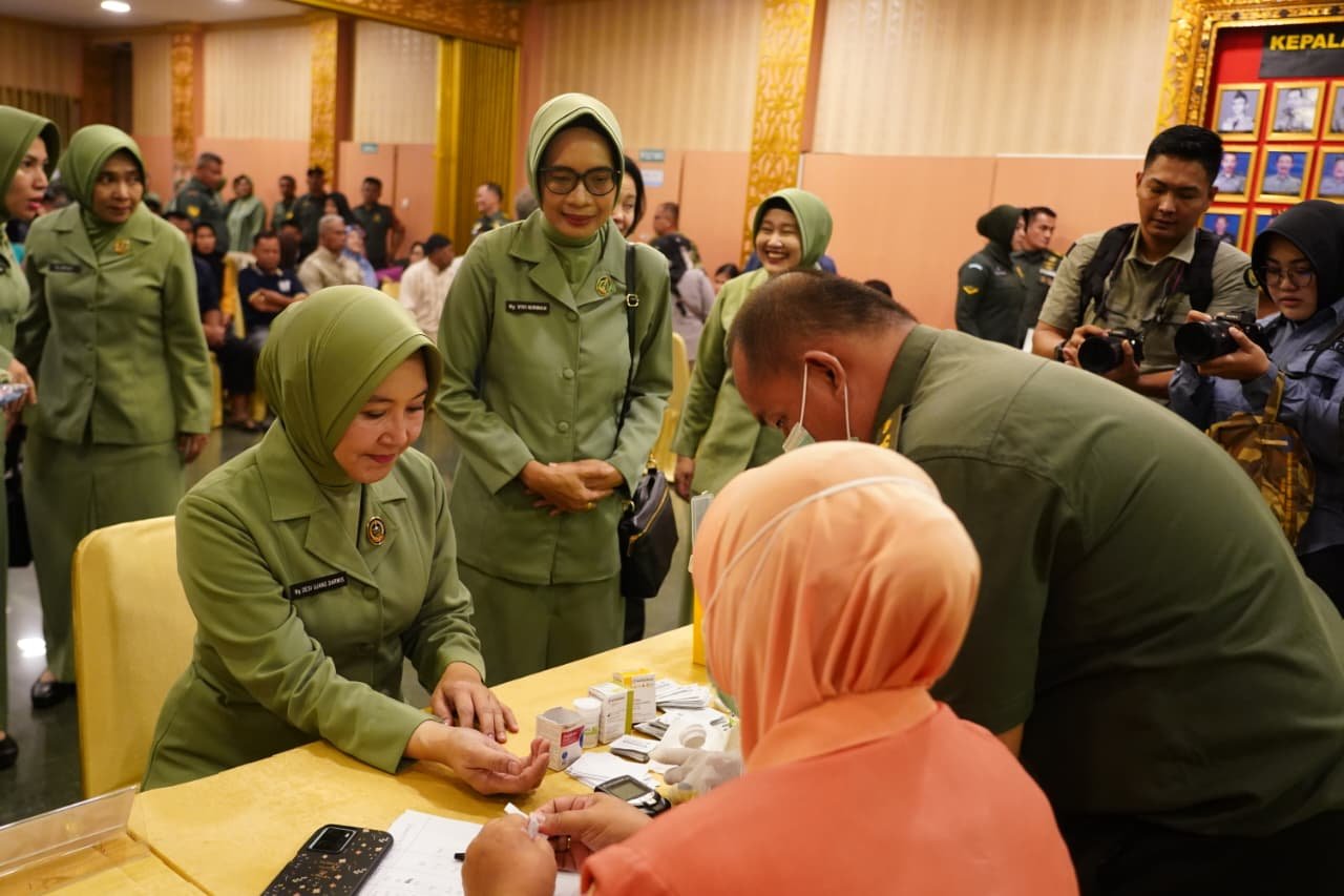 Ketua Persit KCK Daerah II/Sriwijaya, Ny. Desi Ujang Darwis, beserta pengurus dan ketua cabang serta ranting Persit KCK di wilayah Kodam II/Sriwijaya, hadir dalam acara ini. Dalam sambutannya, Ny. Desi menyampaikan komitmen organisasi untuk mendukung kesejahteraan keluarga prajurit serta masyarakat melalui program-program kesehatan yang nyata.