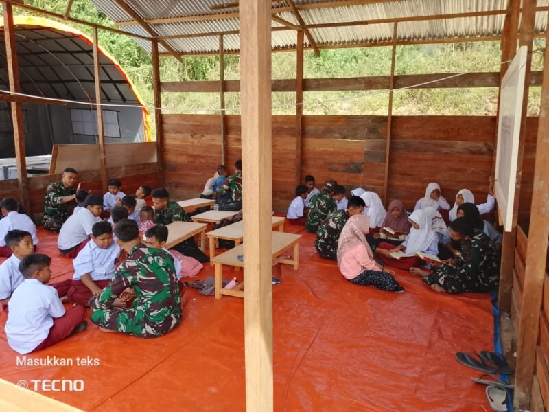 “Kami TNI juga memberikan pembelajaran sesuai buku yang ada Kegiatan ini juga sebagai bentuk dukungan dan kepedulian kami terhadap dunia pendidikan dalam situasi darurat atau bencana,” katanya.