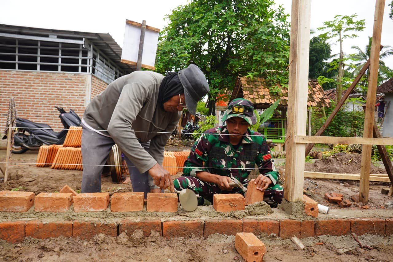 Dengan semangat gotong royong, Praka Watum bersama warga setempat secara aktif berkolaborasi menyusun batu bata untuk mempercepat pembangunan rumah agar dapat segera dihuni oleh keluarga penerima manfaat. Di tengah proses pembangunan, Praka Watum terlihat berupaya keras, mulai dari menyiapkan bahan bangunan, mengangkat batu bata, hingga terlibat langsung dalam pemasangan.