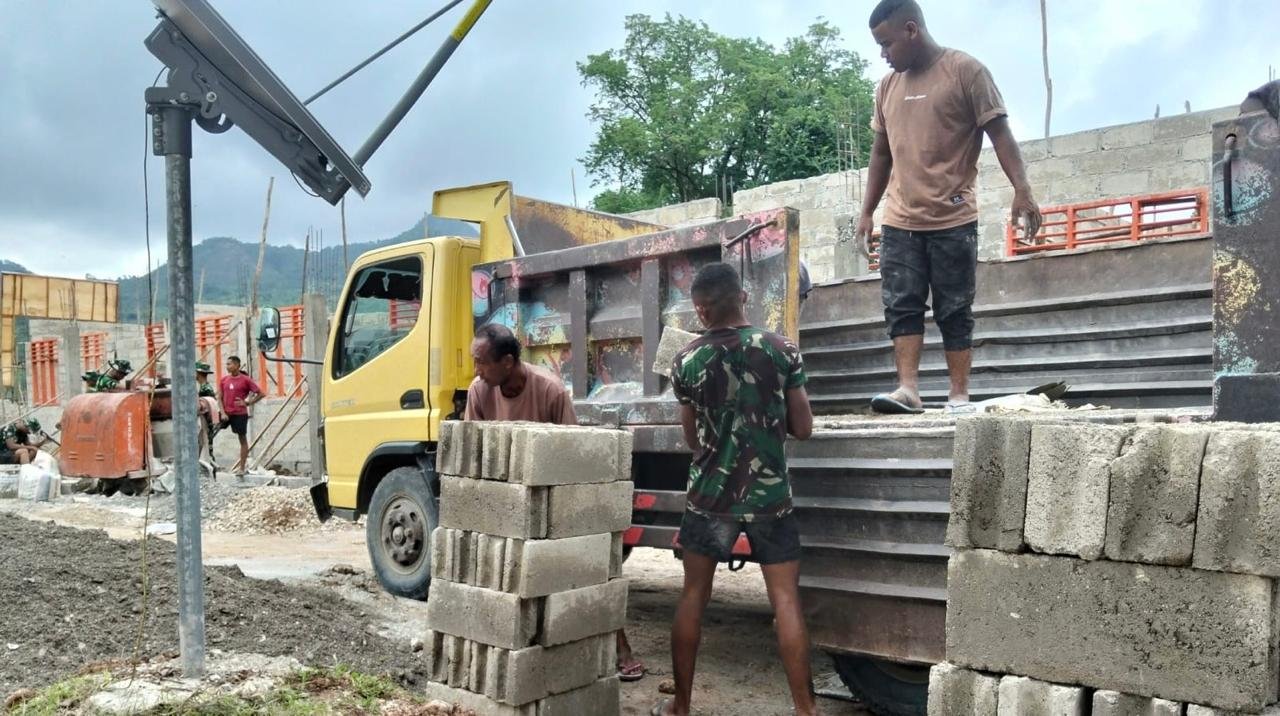 Kedatangan pasokan semen, besi, dan batu batako ke lokasi proyek menjadi indikator signifikan bahwa progres pembangunan berjalan sesuai dengan tahapan konstruksi yang telah ditentukan. Tim Satgas tidak hanya mengawasi jalannya proyek, tetapi juga terjun langsung dalam proses bongkar muat material untuk memastikan efisiensi dan percepatan dalam pekerjaan.