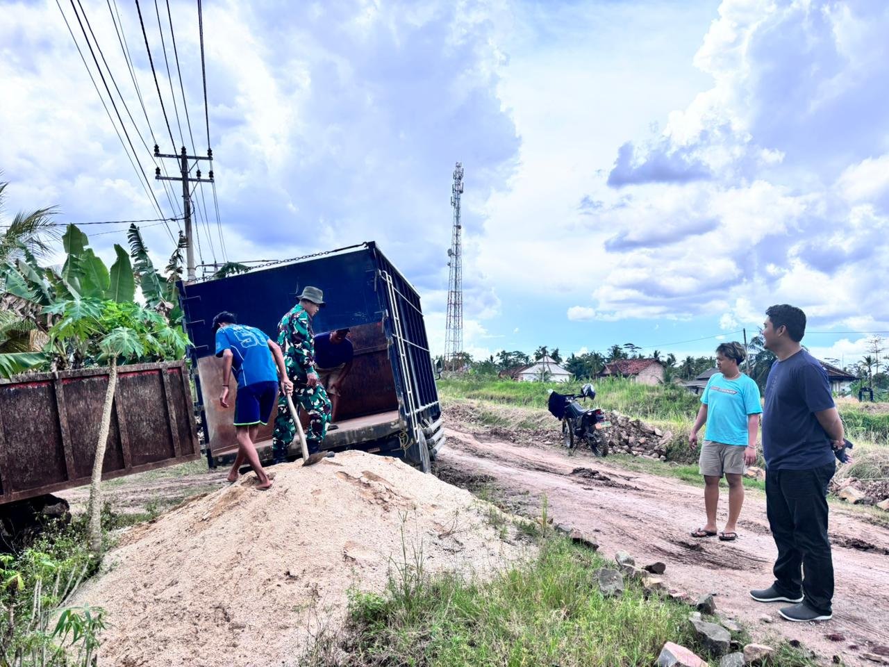 Kegiatan ini dipimpin oleh Sertu Yeyen, seorang Bintara Tinggi Bhakti TNI, yang didampingi oleh Babinsa Koramil 426-01/SP Kodim 0426 Tulang Bawang, Serka Ribut Diantoro. Kehadiran masyarakat setempat dalam kegiatan ini menunjukkan partisipasi aktif mereka dalam mendukung kelancaran pembangunan jembatan.