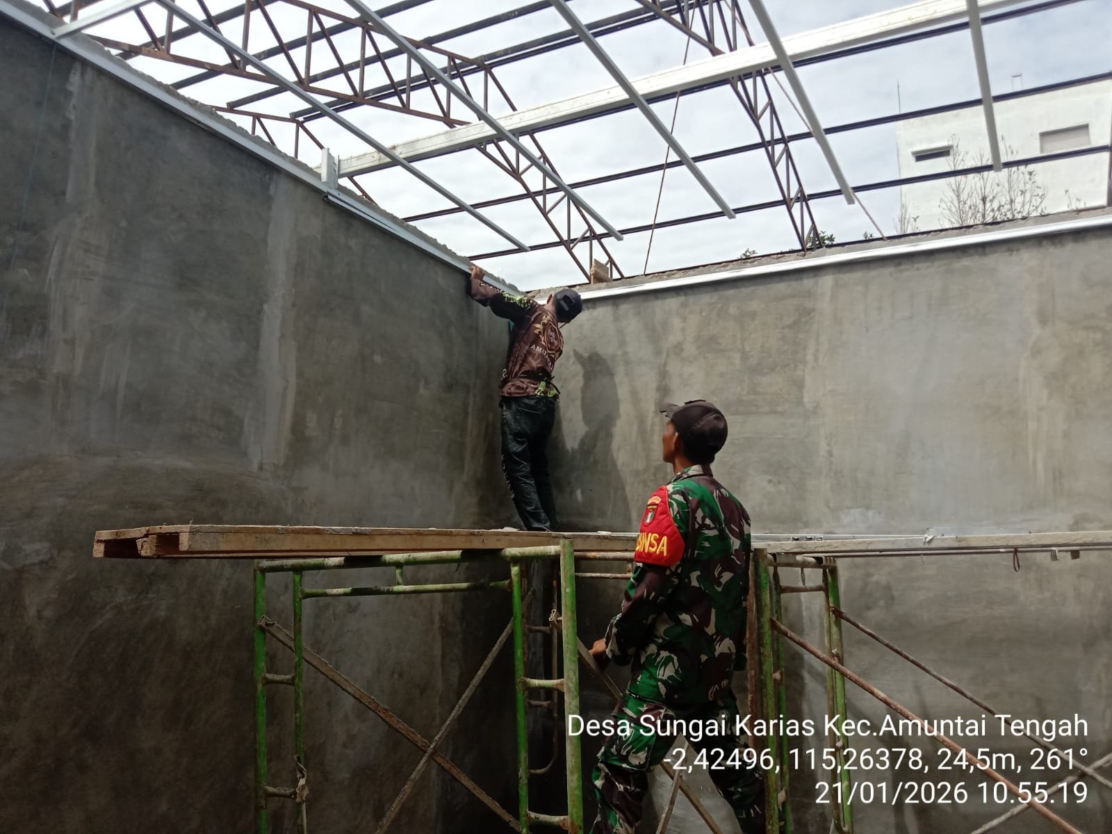 Pada hari Rabu, 21 Januari 2026, Babinsa Koramil 1001-07/Amuntai Tengah Serka Fitriadi melaksanakan pendampingan kegiatan pembangunan KDKMP Sungai Karias yang berlokasi di Desa Sungai Karias, Kecamatan Amuntai Tengah, Kabupaten Hulu Sungai Utara, dengan titik koordinat Lat 2.425202° dan Long 115.263799°.