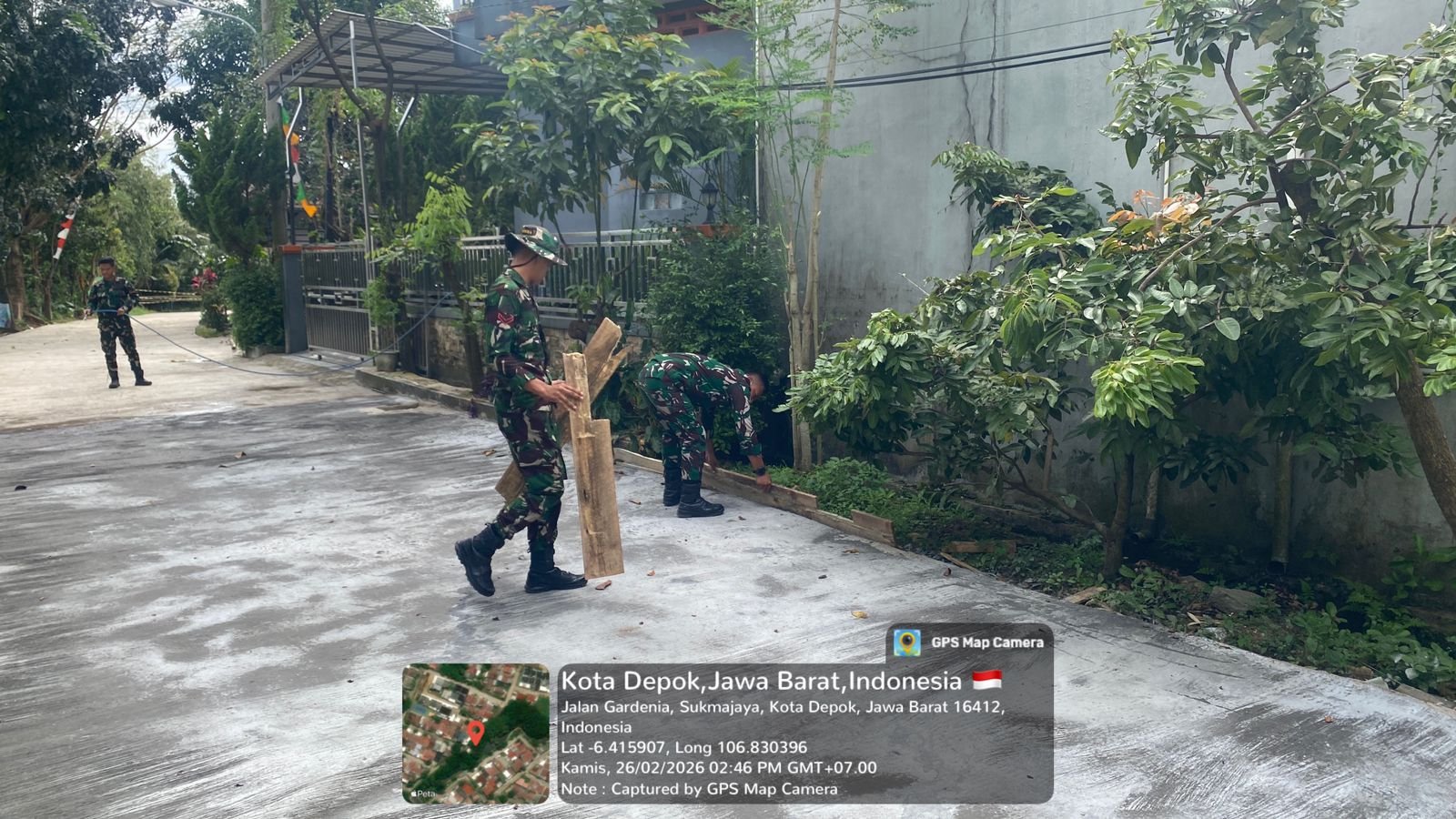 Depok – Program TNI Manunggal Membangun Desa (TMMD) Ke-127 Tahun Anggaran 2026 yang dilaksanakan oleh Kodim 0508/Depok menunjukkan perkembangan yang positif. Salah satu target fisik utama, yaitu pengerasan jalan di kawasan GDC Sektor Gardenia Blok Q RT 03/07, Kelurahan Tirtajaya, Kecamatan Sukmajaya, Kota Depok, kini telah mencapai 75 persen.