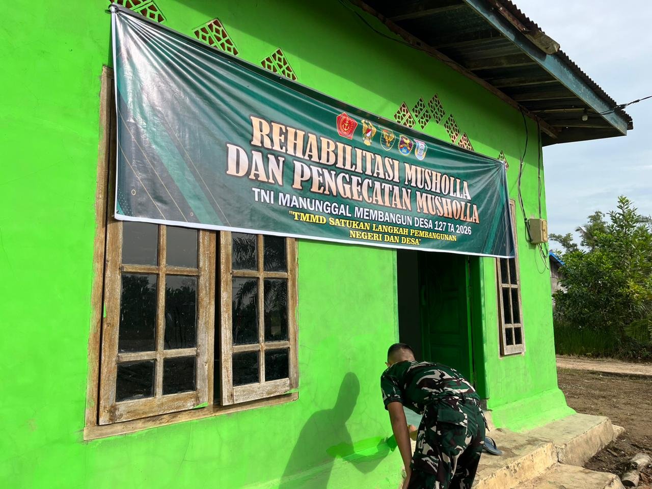 Banyuasin, 28 Februari 2026 – Anggota Satuan Tugas (Satgas) TNI Manunggal Membangun Desa (TMMD) ke-127 dari Kodim 0430/BA terus mempercepat proses rehabilitasi dan pengecatan Mushola Nurul Iman, yang terletak di Jalur 12, Desa Wonosari, Kecamatan Pulau Rimau. Progres pengerjaan saat ini telah mencapai angka 75 persen.