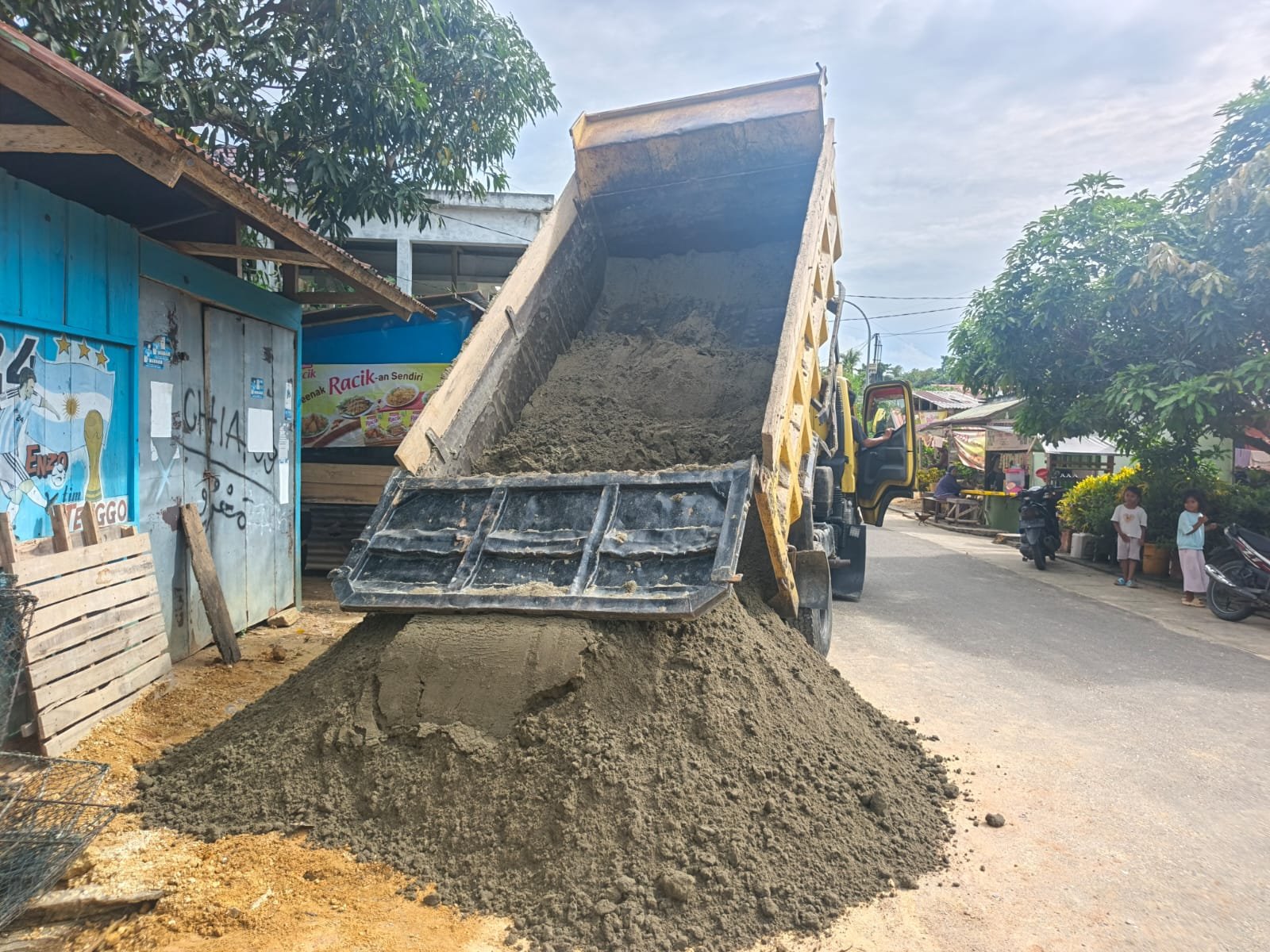 Material berupa semen, pasir, batu, dan berbagai perlengkapan konstruksi lainnya terus dipindahkan oleh personel Satuan Tugas (Satgas) bersama masyarakat setempat. Proses distribusi ini menjadi elemen vital dalam menjaga ritme pekerjaan agar tidak terhambat di lapangan.