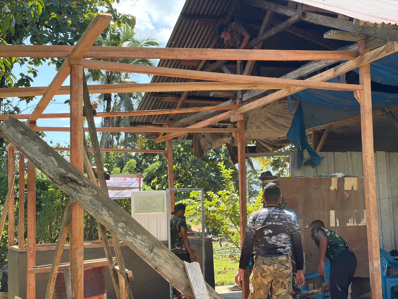 KONAWE UTARA – Inisiatif TMMD ke-128 yang dilakukan oleh Kodim 1430/Konawe Utara memberikan sinar harapan baru bagi para warga, terutama Bapak Herdin yang menjadi salah satu sasaran pembangunan RTLH. Saat ini, proyek sudah mencapai fase pemasangan papan semi permanen yang merupakan tahap penting dalam pembangunan rumah, yang dilaksanakan pada Kamis (30/4/2026).