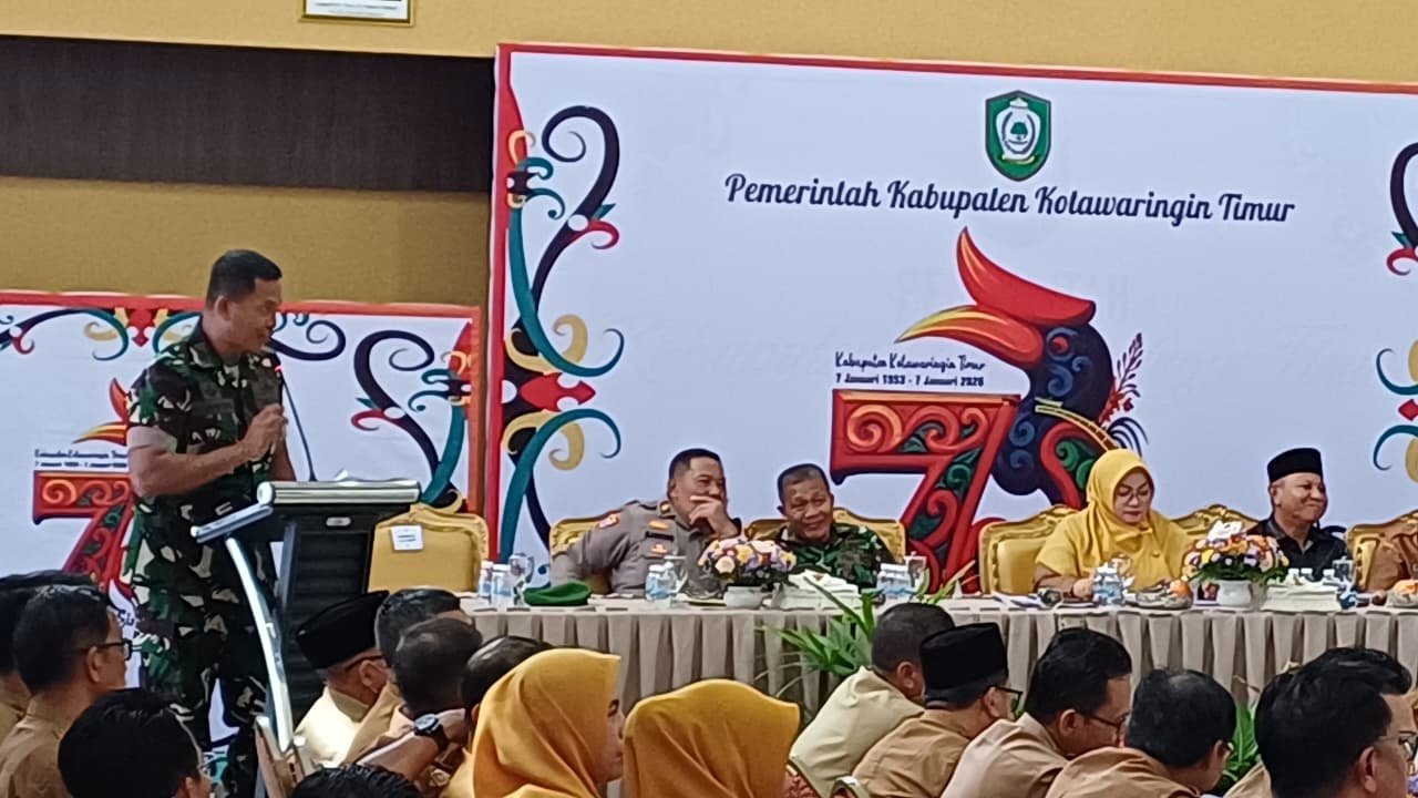 Kotawaringin Timur – Pada Selasa, 30 Desember 2025, Kegiatan Rapat Evaluasi Akhir Tahun 2025 Kabupaten Kotawaringin Timur berlangsung di Aula Rumah Jabatan Bupati. Rapat ini dihadiri oleh berbagai unsur pemerintah daerah, termasuk Dandim 1015/Sampit yang diwakili oleh Kapten Inf Sahidin. Rapat ini dipimpin oleh Wakil Bupati Kotim dan dihadiri oleh sejumlah pejabat penting, antara lain Kakumrem 102/Pjg, Kapolres Kotim, Sekda Kotim, Wakil Ketua 2 DPRD Kotim, serta tokoh agama dan masyarakat.