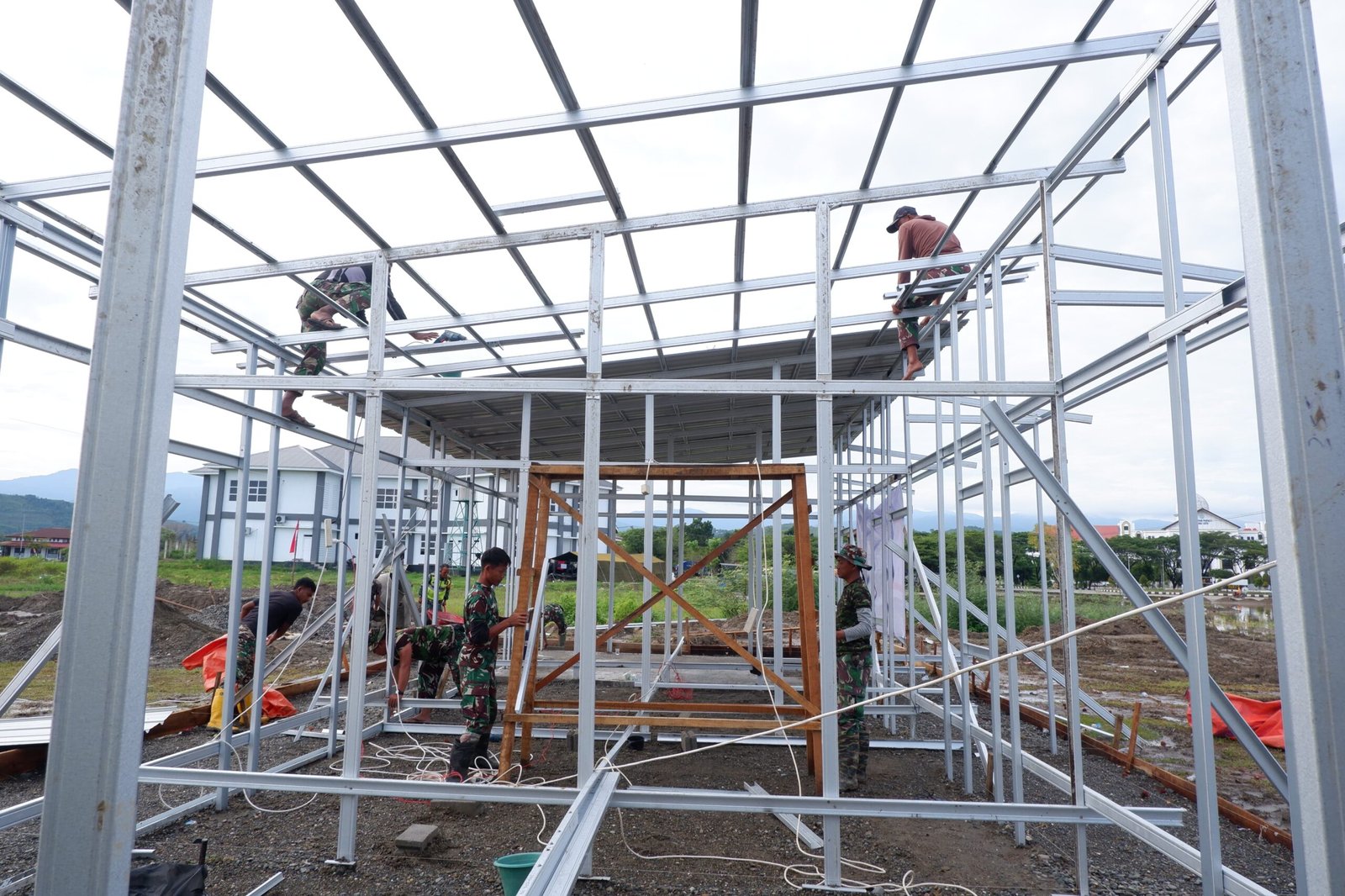 Huntara yang sedang dibangun memiliki tujuan utama untuk memberikan tempat tinggal sementara yang layak, aman, dan manusiawi bagi para korban bencana. Ini adalah bagian dari upaya transisi sebelum pembangunan Hunian Tetap (Huntap) dilaksanakan. Struktur Huntara dirancang dengan menggunakan rangka baja ringan yang kuat dan efisien, sementara material papan semen, lantai multiplek, serta atap zincalume dipilih agar tahan lama dan praktis. Selain itu, Huntara dilengkapi dengan fasilitas pendukung penting seperti dapur umum, sanitasi, dan tempat ibadah.
