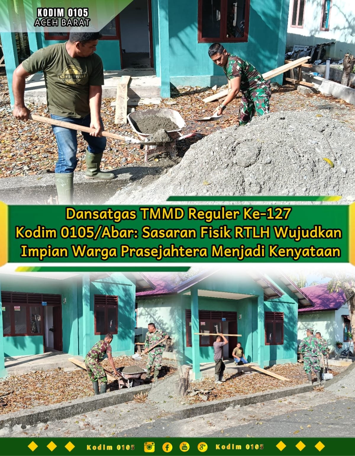 ACEH BARAT – Komitmen pengabdian kepada masyarakat kembali ditegaskan oleh Dansatgas TMMD Reguler ke-127 Kodim 0105/Abar, Letkol Inf S. Kembaren, S.E., M.I.P., CFrA., melalui realisasi sasaran fisik Rumah Tidak Layak Huni (RTLH) di Desa Padang Seurahet, Kecamatan Johan Pahlawan, Selasa (24/2/2026).