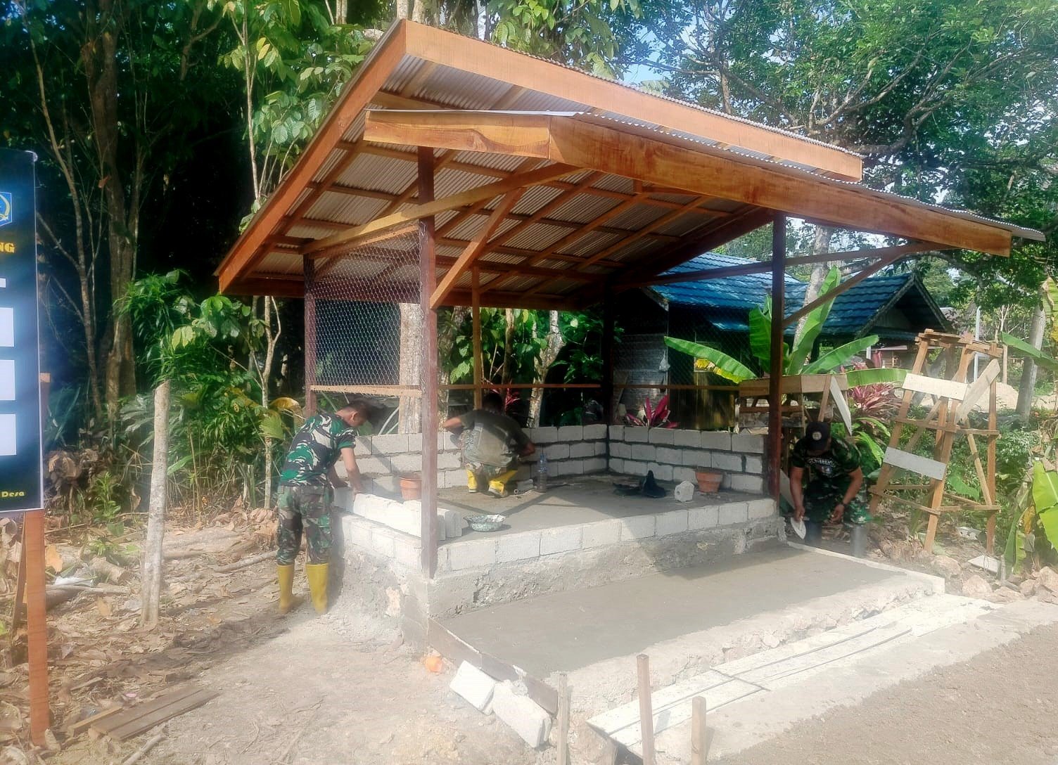 “Pembuatan Pos Kamling ini adalah sasaran fisik tambahan TMMD dengan maksud membangun sumber daya manusia agar lebih peduli terhadap keamanan dan ketertiban lingkungan. Ini juga salah satu upaya Satgas TMMD untuk menumbuhkan jiwa pertahanan darat di masyarakat, sesuai dengan tugas pokok satuan Teritorial Kodim 1003/HSS,” jelas Sertu A Rohman.