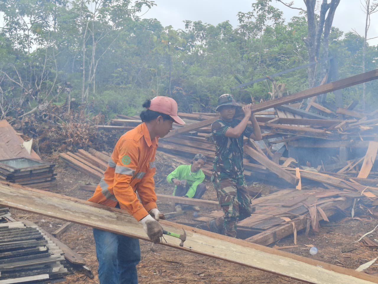 Proses pembangunan dilakukan dengan semangat gotong royong. Anggota Satgas TMMD bergandengan tangan dengan warga setempat mengerjakan struktur bangunan, sementara para pemuda dan ibu-ibu turut membantu menyiapkan konsumsi serta kebutuhan di lapangan.
