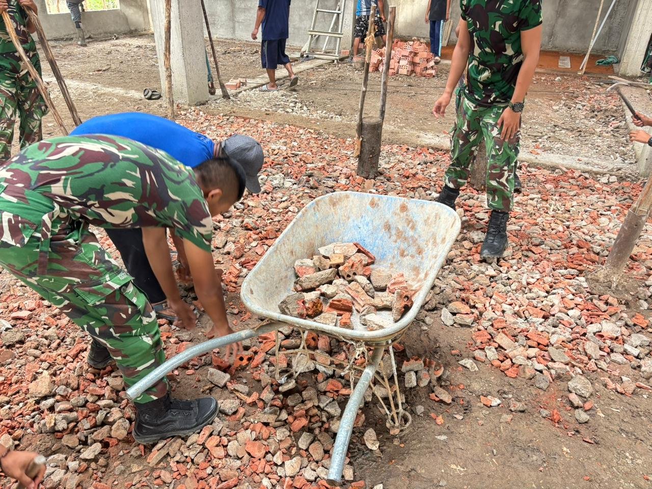Kegiatan gotong royong ini menjadi simbol nyata dari kemanunggalan antara TNI dan rakyat. Personel Satgas bekerja secara berdampingan dengan warga setempat, menciptakan suasana kebersamaan serta kekompakan yang sangat mendukung percepatan pembangunan masjid.