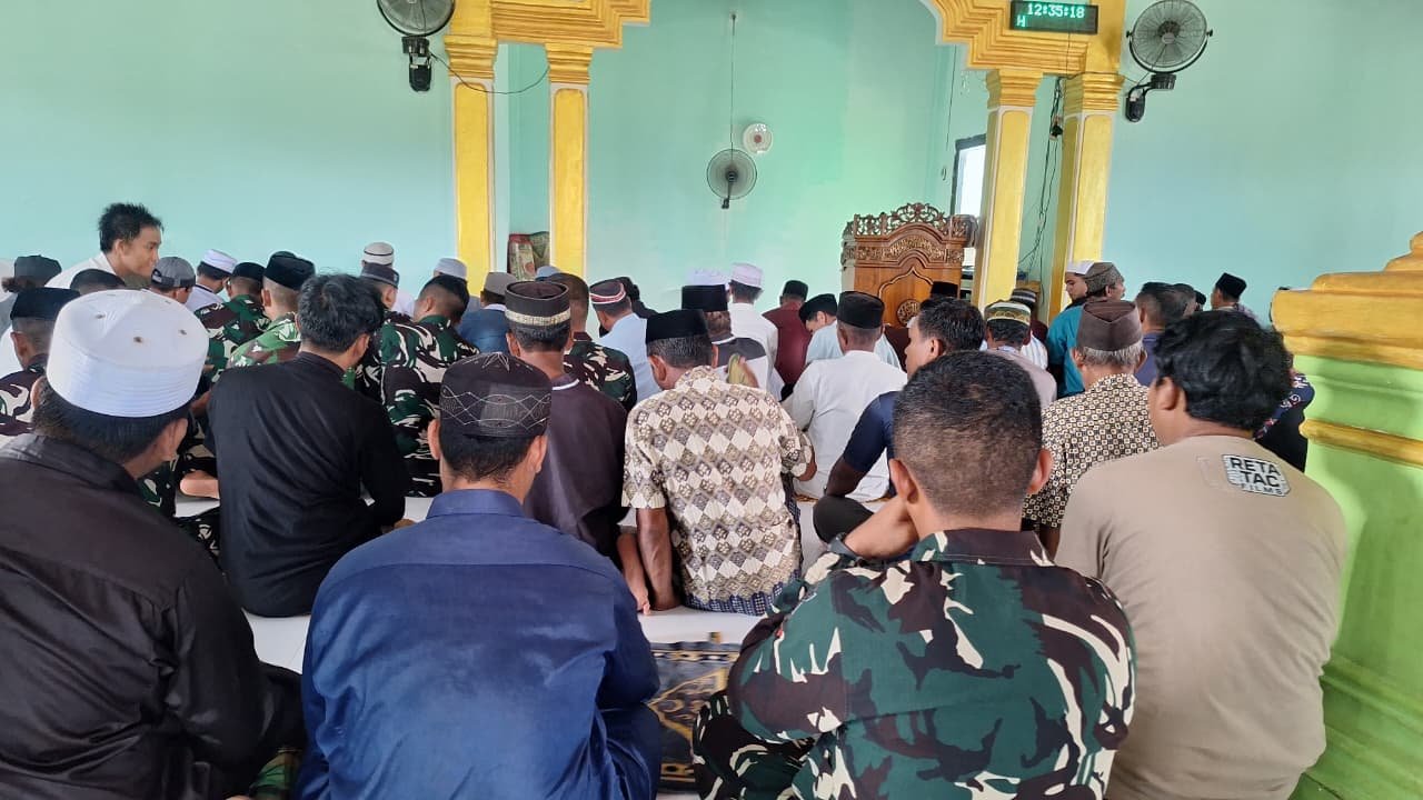 Di tengah kesibukan mereka dalam menyelesaikan berbagai pembangunan fisik program TMMD, para prajurit meluangkan waktu untuk beribadah bersama masyarakat lokal. Dalam suasana penuh khidmat dan kekhusyukan, anggota Satgas TMMD tampak berdiri sejajar dengan warga dalam satu saf, mencerminkan semangat kebersamaan tanpa sekat.