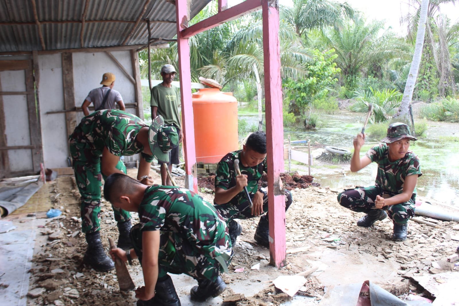 Banyuasin – Personel dari Satuan Tugas (Satgas) TNI Manunggal Membangun Desa (TMMD) Ke-127 yang berasal dari Kodim 0430/BA telah resmi memulai proses pembongkaran Rumah Tidak Layak Huni (RTLH) milik Ibu Suharti. Lokasi rumah tersebut berada di Jalur 2 Dusun 1, Desa Wonosari, Kecamatan Pulau Rimau, Kabupaten Banyuasin, pada tanggal 21 Februari 2026.