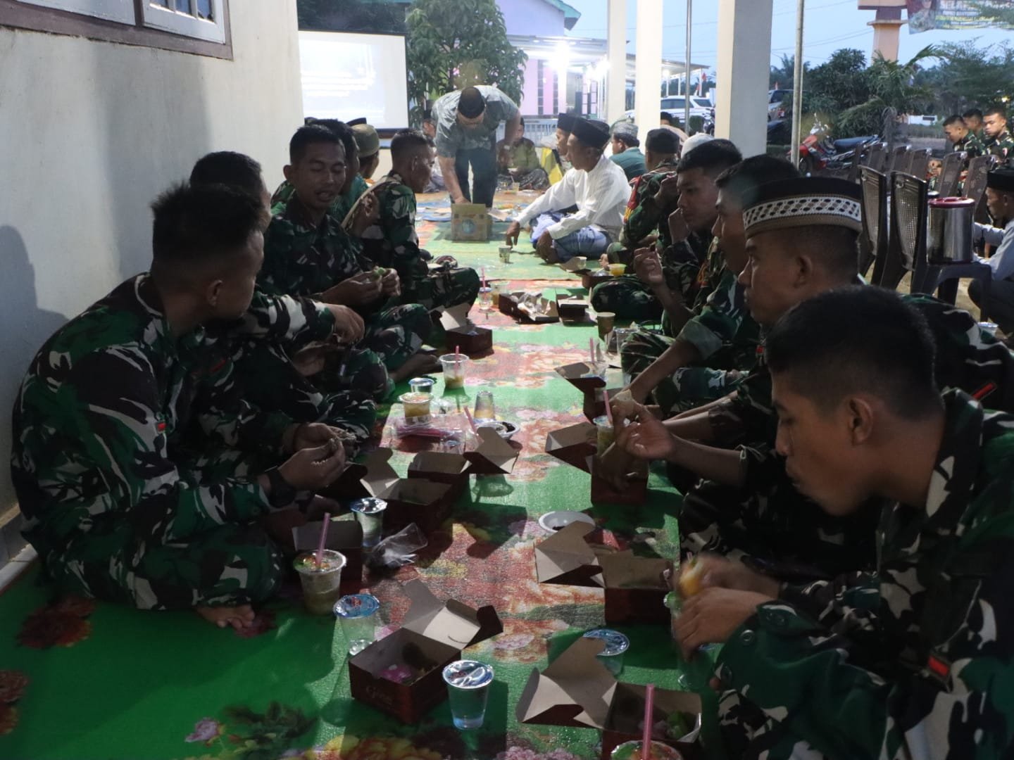 Banyuasin, 10 Maret 2026 – Dalam rangka menyemarakkan bulan suci Ramadan, anggota Satgas Tentara Manunggal Membangun Desa (TMMD) ke-127 Kodim 0430/Banyuasin mengadakan acara buka puasa bersama di rumah Kepala Desa Wonosari, Bapak Usman Noviardi. Kegiatan ini dihadiri oleh Kasdim 0430/Banyuasin Mayor Inf Saibudin dan Pasiterdim 0430/Banyuasin Kapten Inf Panca Agung, yang turut berinteraksi dengan warga setempat.