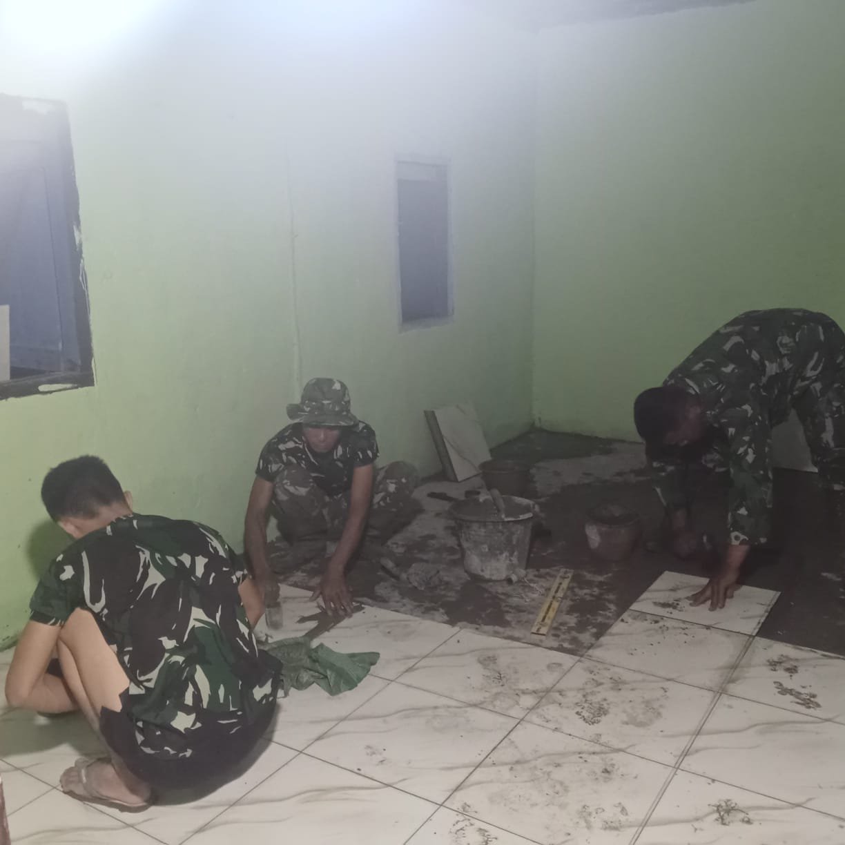 Banyuasin, 8 Maret 2026 – Dalam pelaksanaan program TNI Manunggal Membangun Desa (TMMD) ke-127, anggota Satgas dari Kodim 0430/Banyuasin menunjukkan komitmen yang tinggi dalam kegiatan pembangunan di Desa Wonosari, Kecamatan Pulau Rimau. Dalam usaha memenuhi target penyelesaian proyek, anggota Satgas melanjutkan pekerjaan rumah tidak layak huni (RTLH) milik Ibu Suwarti hingga malam hari.