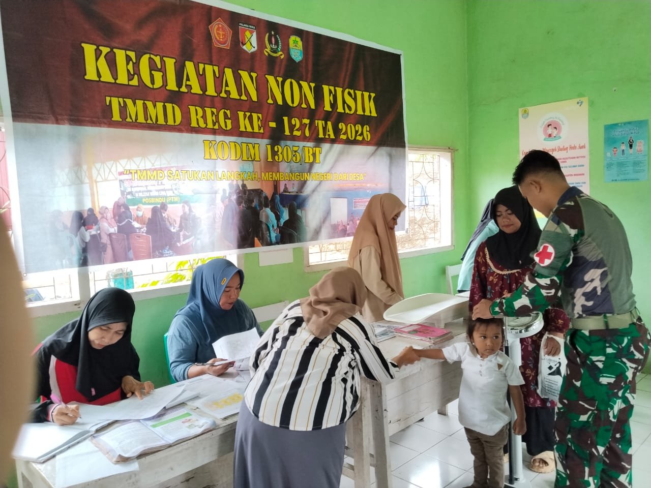 Tolitoli – Dalam upaya mendukung peningkatan kesehatan masyarakat, Satgas TNI Manunggal Membangun Desa (TMMD) ke-127 dari Kodim 1305/Buol Tolitoli telah melaksanakan kegiatan non fisik yang berupa pelayanan Posyandu dan Posbindu di Desa Oyom, Kecamatan Lampasio, Kabupaten Tolitoli, pada Jum’at (20/2/2026).