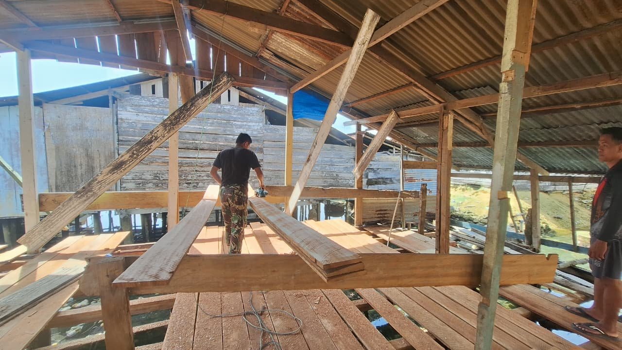 Pemasangan lantai ini merupakan tahap krusial dalam proses penyempurnaan bangunan. Dengan penuh ketelitian dan kerjasama yang solid, setiap papan dipasang dengan rapi untuk memastikan kenyamanan serta kekuatan struktural rumah. Program ini termasuk dalam sasaran fisik utama TMMD ke-127, yang bertujuan untuk meningkatkan kualitas tempat tinggal warga, terutama di daerah pesisir yang memerlukan perhatian ekstra terhadap kondisi hunian.