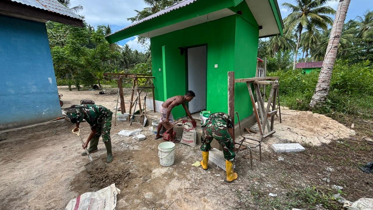 Satgas TMMD 127 Kodim 1804/Kaimana Fokus pada Pemasangan Tegel MCK di Kampung Sisir