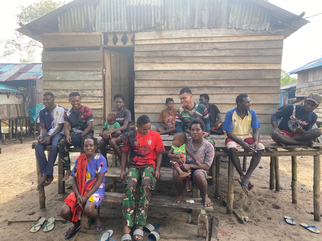 Timika – Di tengah padatnya jadwal pembangunan sasaran fisik pada kegiatan TMMD ke-128, anggota Satgas dari Kodim 1710/Mimika tidak melewatkan kesempatan untuk berinteraksi dengan komunitas setempat. Kegiatan komunikasi sosial (Komsos) yang dilaksanakan ini bertujuan untuk membangun hubungan yang lebih dekat antara prajurit TNI dan warga Kampung Keakwa, yang terletak di Distrik Mimika Tengah.