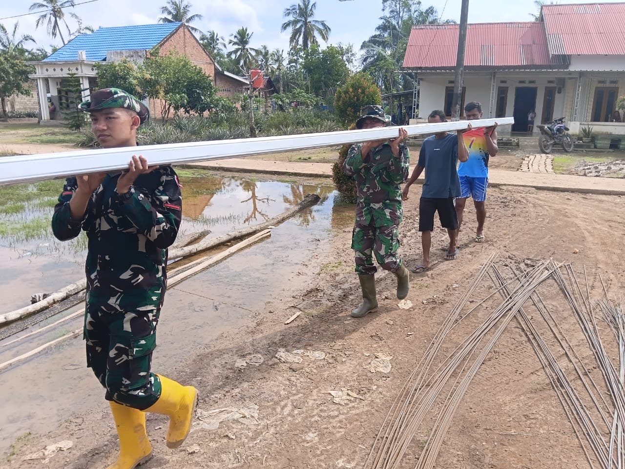 Banyuasin – Anggota Satgas TMMD Ke-127 dari Kodim 0430/BA berkolaborasi dengan warga setempat dalam mengangkut bahan material untuk rehabilitasi Rumah Tidak Layak Huni (RTLH) milik Ibu Suwarti yang terletak di Desa Wonosari, Kecamatan Pulau Rimau, Kabupaten Banyuasin. Pengangkutan material tersebut berlangsung di Jalur 2 Dusun 1, dan menjadi bagian penting dari program ini.