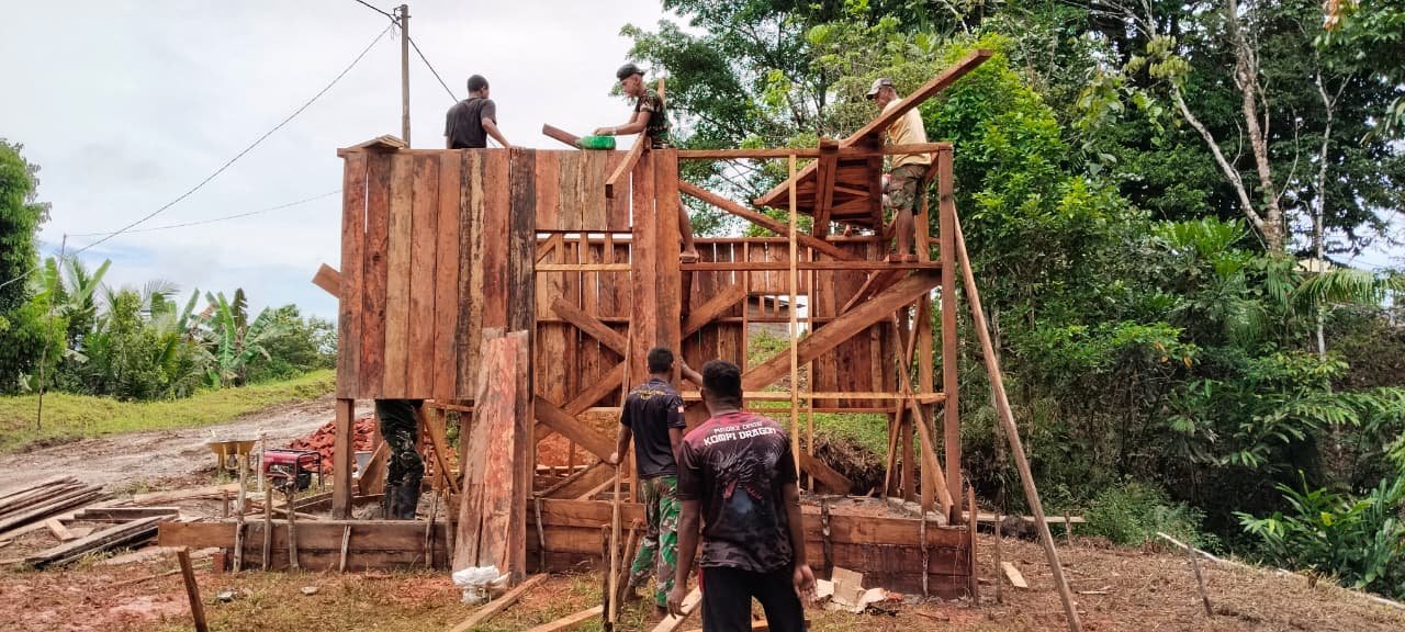 Boven Digoel – Satuan Tugas TNI Manunggal Membangun Desa (TMMD) ke-126 Kodim 1711/Boven Digoel terus mengebut proses pembangunan Rumah Tidak Layak Huni (RTLH) ke-3 di Kampung Waropko. Kini, pekerjaan telah memasuki tahap pemasangan rangka atap sebagai bagian penting menuju tahap finishing.