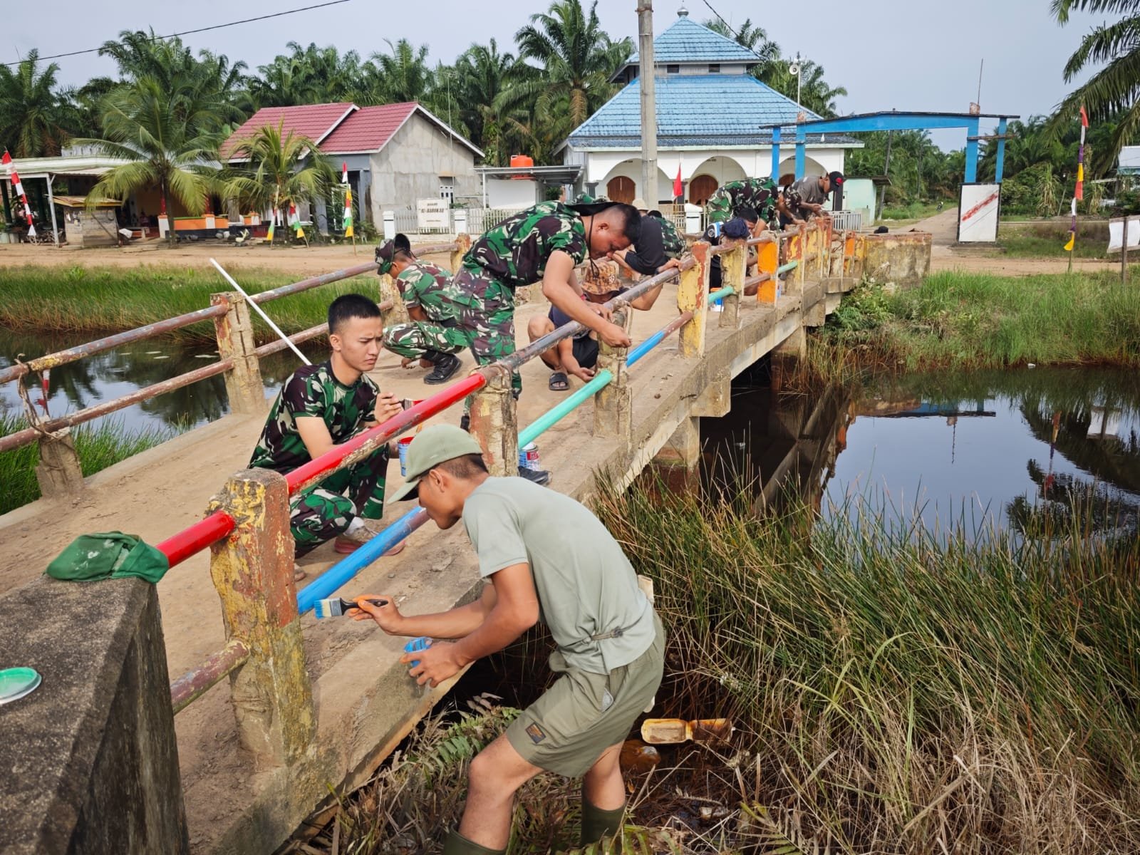 Banyuasin – Dalam upaya meningkatkan aksesibilitas transportasi bagi masyarakat, Satgas TMMD Ke-127 Tahun Anggaran 2026 dari Kodim 0430/Banyuasin melaksanakan kegiatan pemeliharaan dan pengecatan jembatan di Desa Wonosari, Kecamatan Pulau Rimau, Kabupaten Banyuasin. Kegiatan ini melibatkan personel Satgas TMMD bekerja sama dengan warga setempat dan merupakan bagian dari program sasaran fisik TMMD.