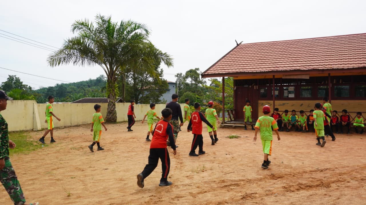 Kotawaringin Timur – Meski tengah disibukkan dengan program TMMD ke-127, anggota Satuan Tugas (Satgas) Kodim 1015/Sampit masih meluangkan waktu untuk berinteraksi dengan masyarakat, khususnya anak-anak di Desa Bukit Indah melalui kegiatan sepak bola pada Jumat, 27 Februari 2026. Pertandingan yang dilaksanakan di lapangan SDN 1 Bukit Indah tersebut menggunakan bola plastik dan batu sebagai penanda gawang, namun hal ini tidak mengurangi semangat dan antusiasme para peserta. Kegiatan ini dimaksudkan sebagai upaya untuk mendekatkan TNI dengan masyarakat, terutama generasi muda yang merupakan harapan masa depan desa. Walaupun jadwal padat dengan pelaksanaan sasaran fisik dan nonfisik TMMD, semangat prajurit untuk membangun komunikasi yang baik dan silaturahmi tetap tinggi. Dengan pendekatan yang akrab dan penuh rasa kebersamaan, Satgas TMMD ke-127 terus berusaha menanamkan nilai-nilai kedekatan, kepedulian, serta kemanunggalan antara TNI dan rakyat.