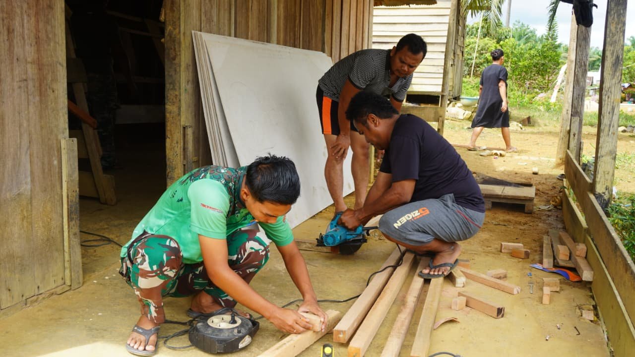 Di Desa Tri Buana, Kecamatan Telaga Antang, anggota Satgas bekerja sama dengan masyarakat setempat dalam menyelesaikan berbagai tahap pekerjaan. Proses tersebut mencakup pemasangan dinding, perbaikan atap, dan pengecatan. Meskipun di hari istirahat, para prajurit tetap berfokus untuk memastikan bahwa rumah yang dibangun dapat segera dihuni dengan kondisi yang lebih baik.