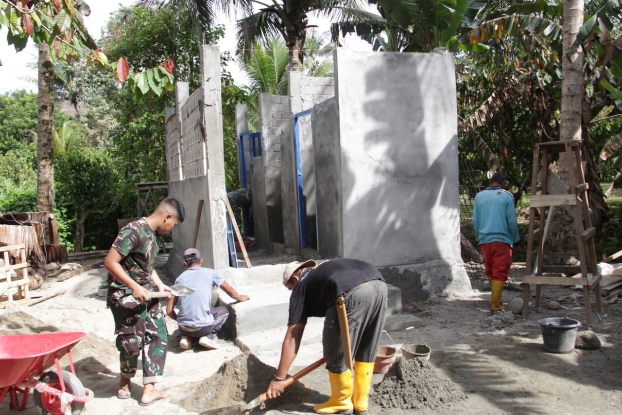 Tolitoli – Dalam upaya meningkatkan kualitas sanitasi masyarakat, Satgas TMMD ke-127 dari Kodim 1305/Buol Tolitoli intensifkan pembangunan fasilitas Mandi, Cuci, Kakus (MCK) di Desa Oyom, Kecamatan Lampasio, Kabupaten Tolitoli pada Kamis (5/3/2026). Pembangunan MCK ini merupakan bagian dari program TMMD yang ditujukan untuk memperbaiki kesehatan lingkungan serta akses sanitasi bagi warga yang selama ini terbatas.