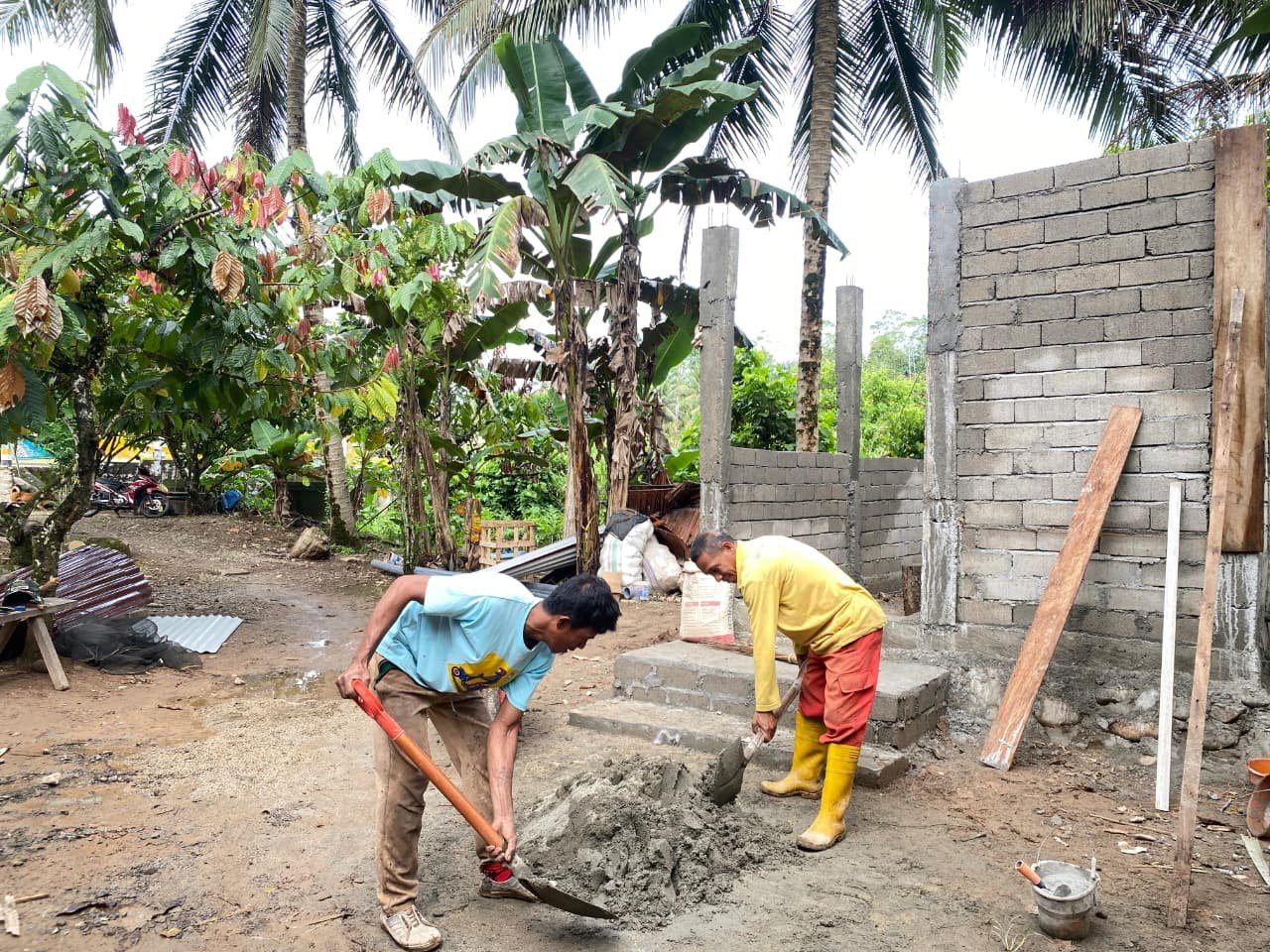 Proses pembangunan ini dilakukan dengan semangat gotong royong, sehingga diharapkan dapat memenuhi target penyelesaian yang telah ditentukan. Antusiasme masyarakat terlihat jelas melalui partisipasi aktif mereka dalam membantu proses pembangunan tersebut.