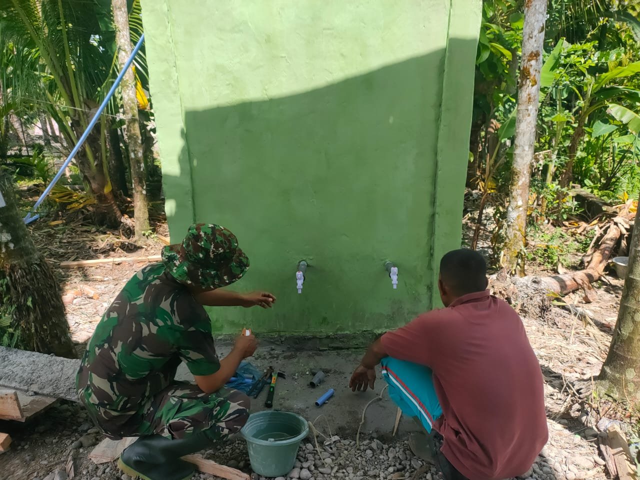 Di lokasi kegiatan, Rabu (25/2/2026), Danpos Suka Makmue Pelda Rahmat menyampaikan bahwa proses pengecatan dan pemasangan pipa menjadi bagian penting sebelum bak air difungsikan. “Kami optimis sasaran ini rampung sebelum penutupan TMMD,” ujarnya penuh keyakinan.