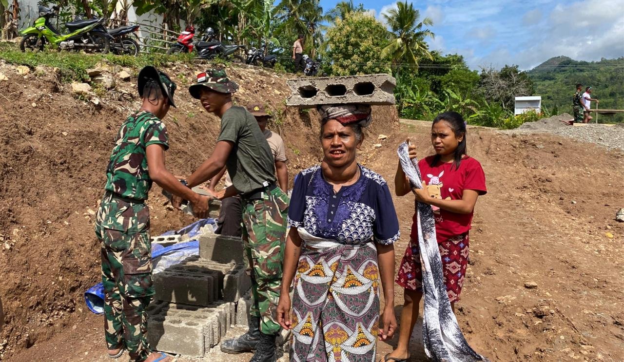 Menariknya, partisipasi tidak hanya datang dari para pria. Ibu-ibu dari Desa Sunkaen juga ikut berkontribusi dengan antusias, bergabung bersama anggota TNI untuk mempercepat proses pembangunan ruang belajar yang akan menjadi tempat bagi generasi mendatang.