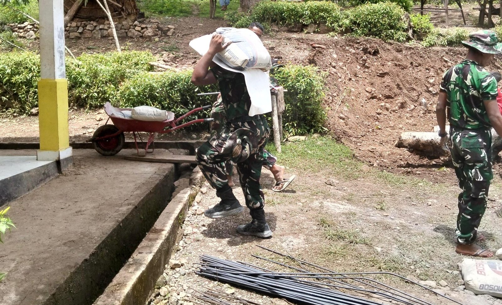 NTT–Kefamenanu – Satgas TNI Manunggal Membangun Desa (TMMD) Ke-127 dari Kodim 1618/TTU menunjukkan aksi nyata dalam mendukung pembangunan dengan mendistribusikan material untuk empat Ruang Kelas Baru (RKB) di SMAN Bikomi Nilulat pada Rabu (18/02/2026). Dalam kegiatan tersebut, para prajurit TNI berkolaborasi dengan masyarakat setempat. Mereka bekerja sama dalam menurunkan semen, mengangkat besi, dan merakit batako dengan semangat yang tinggi.