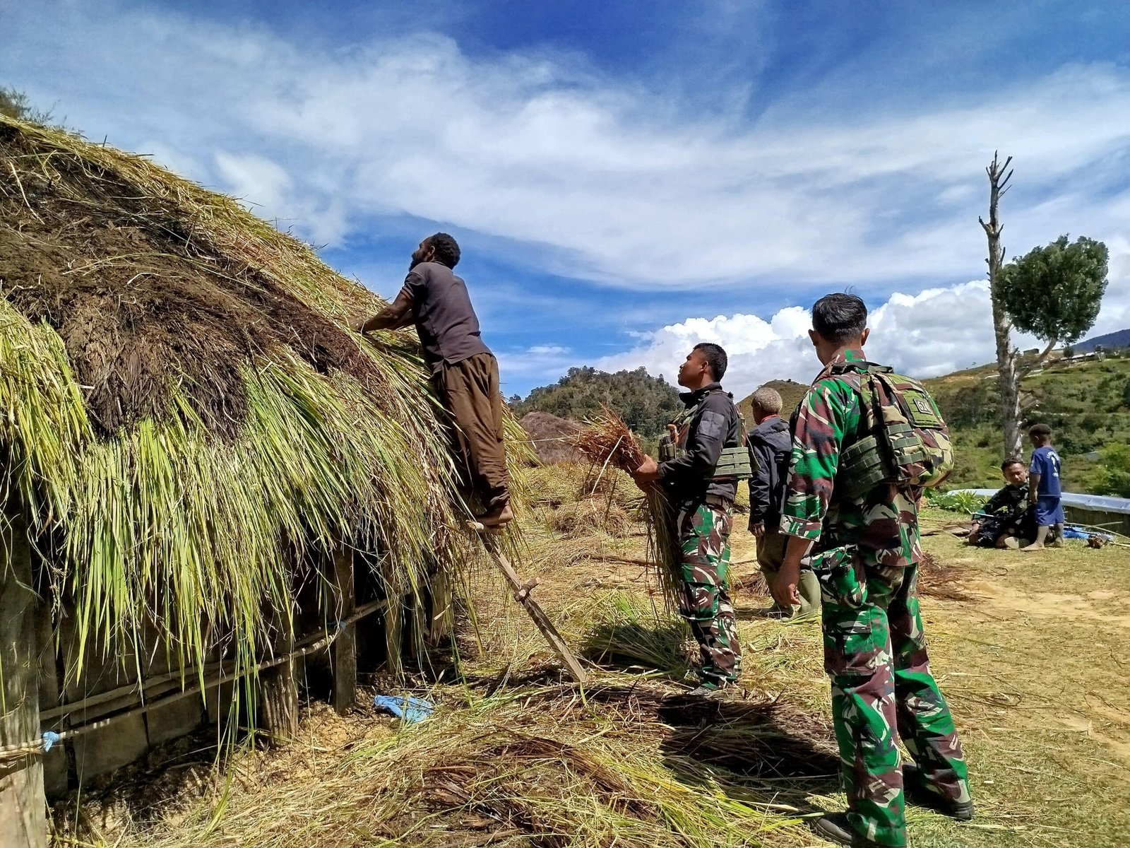 LANNY JAYA – Bentuk perhatian terhadap sarana tempat tinggal warga, Satgas Yonif 614/Raja Pandhita Pos Popome hadir membantu warga yang tengah kerja bakti untuk memperbaiki Honey warga binaan yang bertempat di Desa Popome, Distrik Mokoni, Kabupaten Lanny Jaya, Papua Pegunungan, Kamis (14/11).