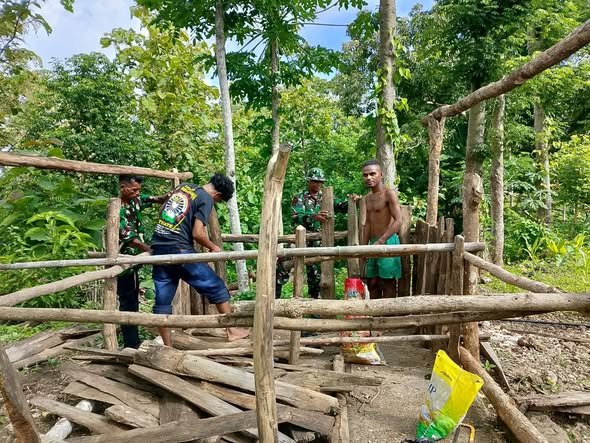 Dalam upaya meningkatkan pengawasan terhadap ternak warga, anggota Satgaster Kodim 1605/Belu Pos Halibete 2, Serka Donatus, melaksanakan program pembuatan kandang ternak di Dusun Aitemuk, Desa Fatulotu, Kecamatan Lasiolat, Kabupaten Belu, Nusa Tenggara Timur (NTT) pada Minggu, 28 Desember 2025. Kegiatan ini tidak hanya bertujuan untuk menjamin keamanan ternak, tetapi juga melindungi tanaman warga dari kerusakan akibat ternak yang berkeliaran bebas.
