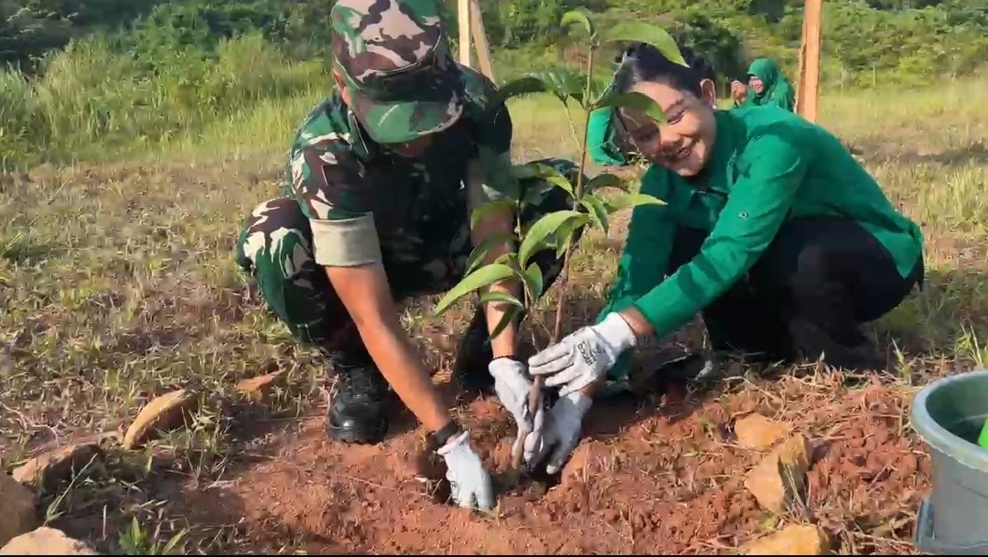 Sejak pagi, suasana kebersamaan sudah terasa di lokasi kegiatan. Para anggota Persit bersama unsur terkait tampak antusias mengikuti rangkaian penanaman pohon yang dilakukan di beberapa titik. Bibit-bibit pohon yang telah disiapkan ditanam secara bersama-sama sebagai simbol kepedulian terhadap kelestarian alam.