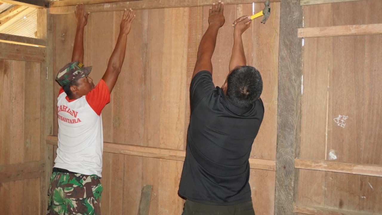 Sejak pagi, para anggota Satgas telah hadir di lokasi untuk melanjutkan pekerjaan fisik. Aktivitas yang dipercepat mencakup pemasangan rangka atap, perapian dinding, dan penyempurnaan struktur bangunan agar rumah tersebut segera dapat dihuni oleh penerima manfaat.