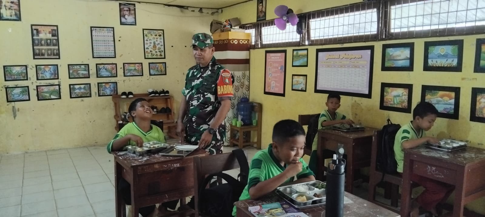 Kegiatan monitoring oleh Babinsa juga menjadi momen edukatif bagi siswa, di mana mereka diajak untuk memahami pentingnya pola makan sehat dan bergizi. Serka Yuyu menutup kegiatan dengan pesan kepada para siswa agar selalu menghargai makanan yang diberikan dan menjaga kebersihan lingkungan sekolah.