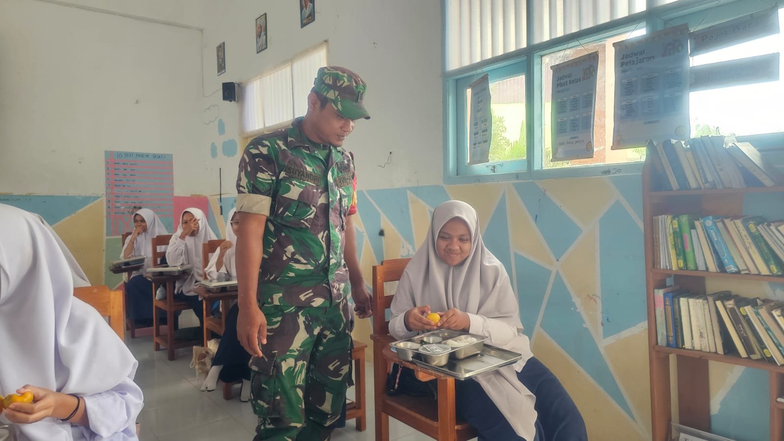 Serma Suyandri menyampaikan bahwa pendampingan tersebut merupakan bagian dari tugas pembinaan teritorial Babinsa, khususnya dalam mendukung program-program yang berdampak langsung pada peningkatan kualitas sumber daya manusia di wilayah binaan. Melalui pemberian makanan bergizi, diharapkan para siswa memperoleh asupan nutrisi yang cukup untuk mendukung aktivitas belajar sehari-hari.