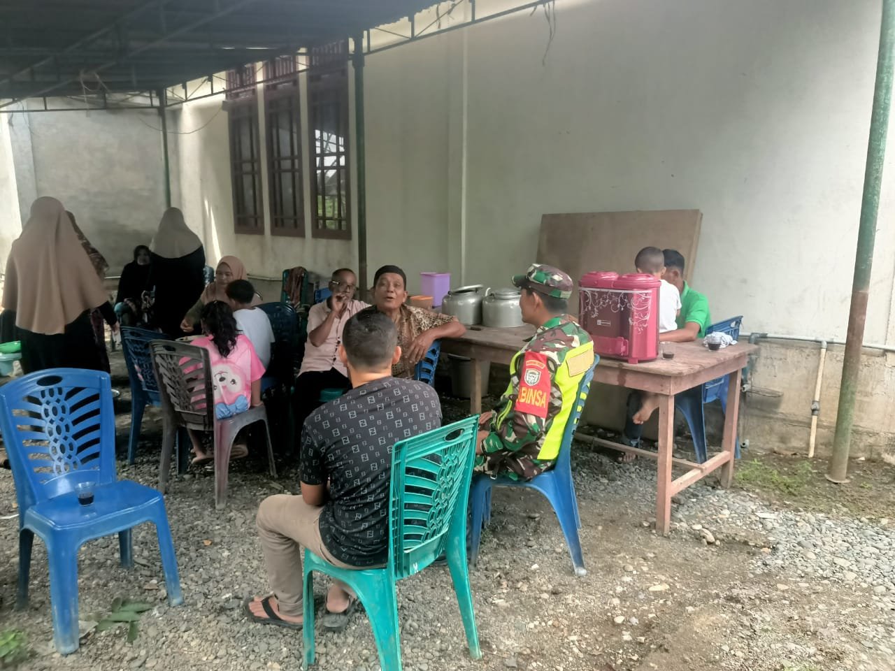 Kegiatan Komsos ini menjadi wadah bagi Babinsa untuk berdialog langsung dengan masyarakat, mendengarkan aspirasi, keluhan, serta informasi terkait situasi di lingkungan gampong. Melalui komunikasi yang baik, Babinsa dapat memantau perkembangan wilayah sekaligus membantu mencari solusi bersama atas berbagai permasalahan warga.