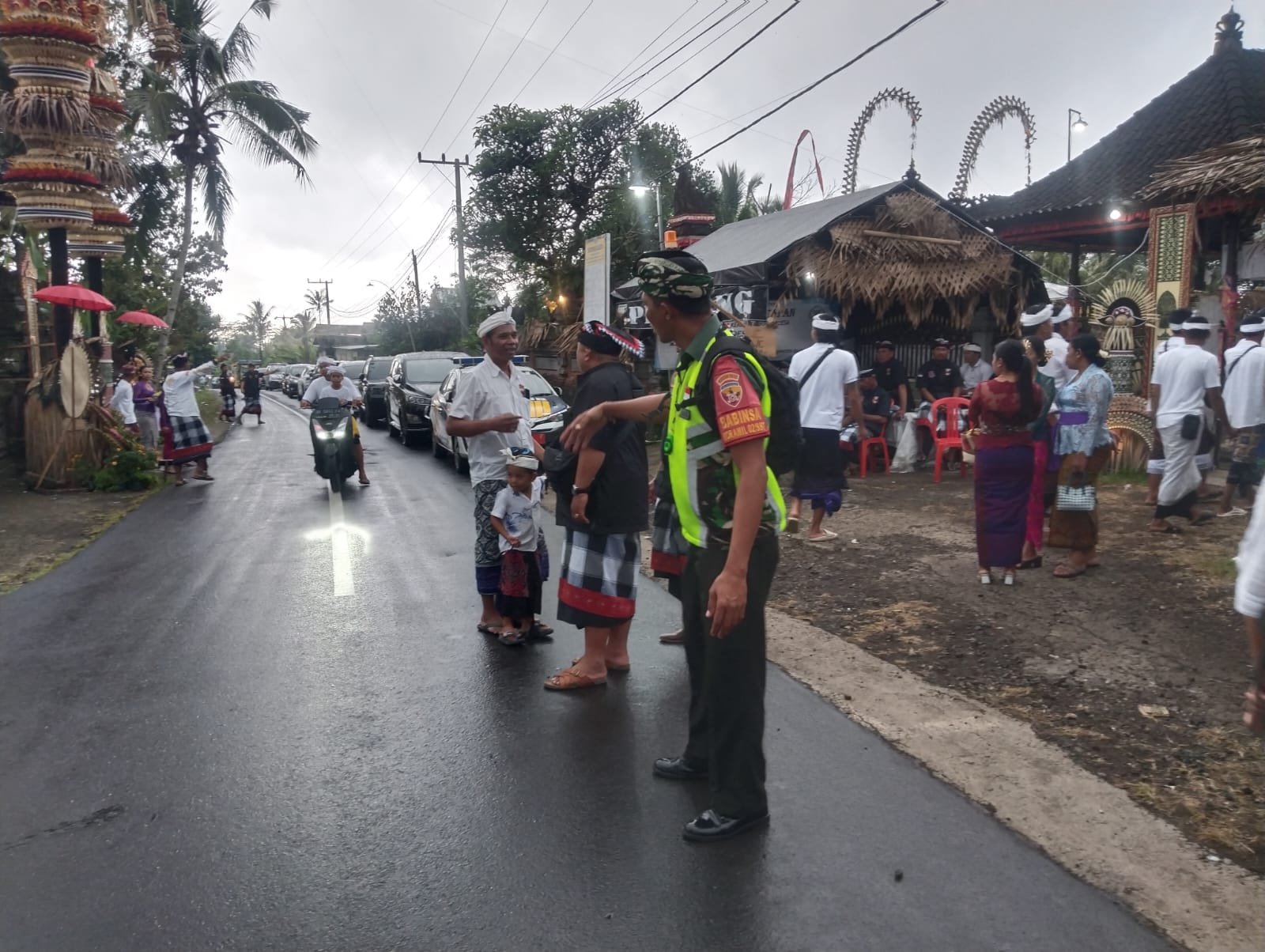 Pengamanan yang dilakukan bertujuan untuk memastikan setiap aspek dari upacara keagamaan ini berjalan dengan aman, tertib, serta memberikan rasa nyaman bagi masyarakat dan pemedek yang mengikuti prosesi. Kolaborasi antara Babinsa dan pecalang terlihat sangat solid, terlihat dari pengaturan arus lalu lintas, penjagaan ketertiban, serta langkah-langkah antisipatif terhadap potensi gangguan keamanan selama kegiatan berlangsung.