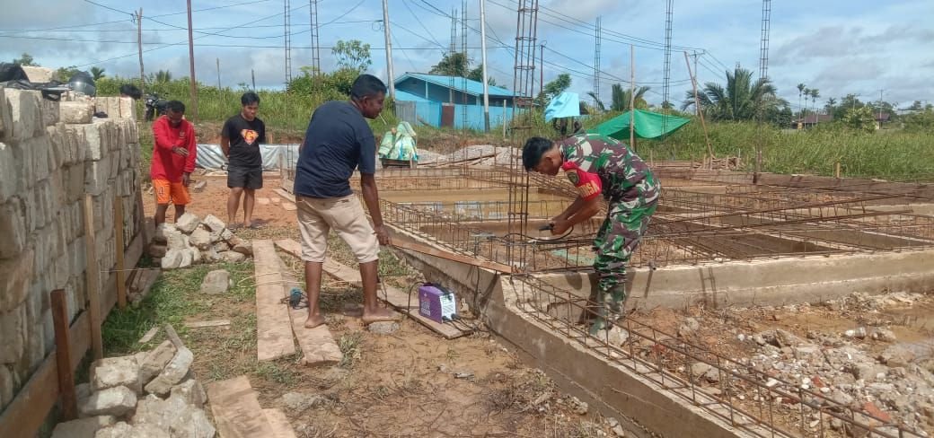 Sinergi TNI dan Masyarakat: Babinsa Bantu Pemasangan Rangka Slop Rumah di Boven Digoel