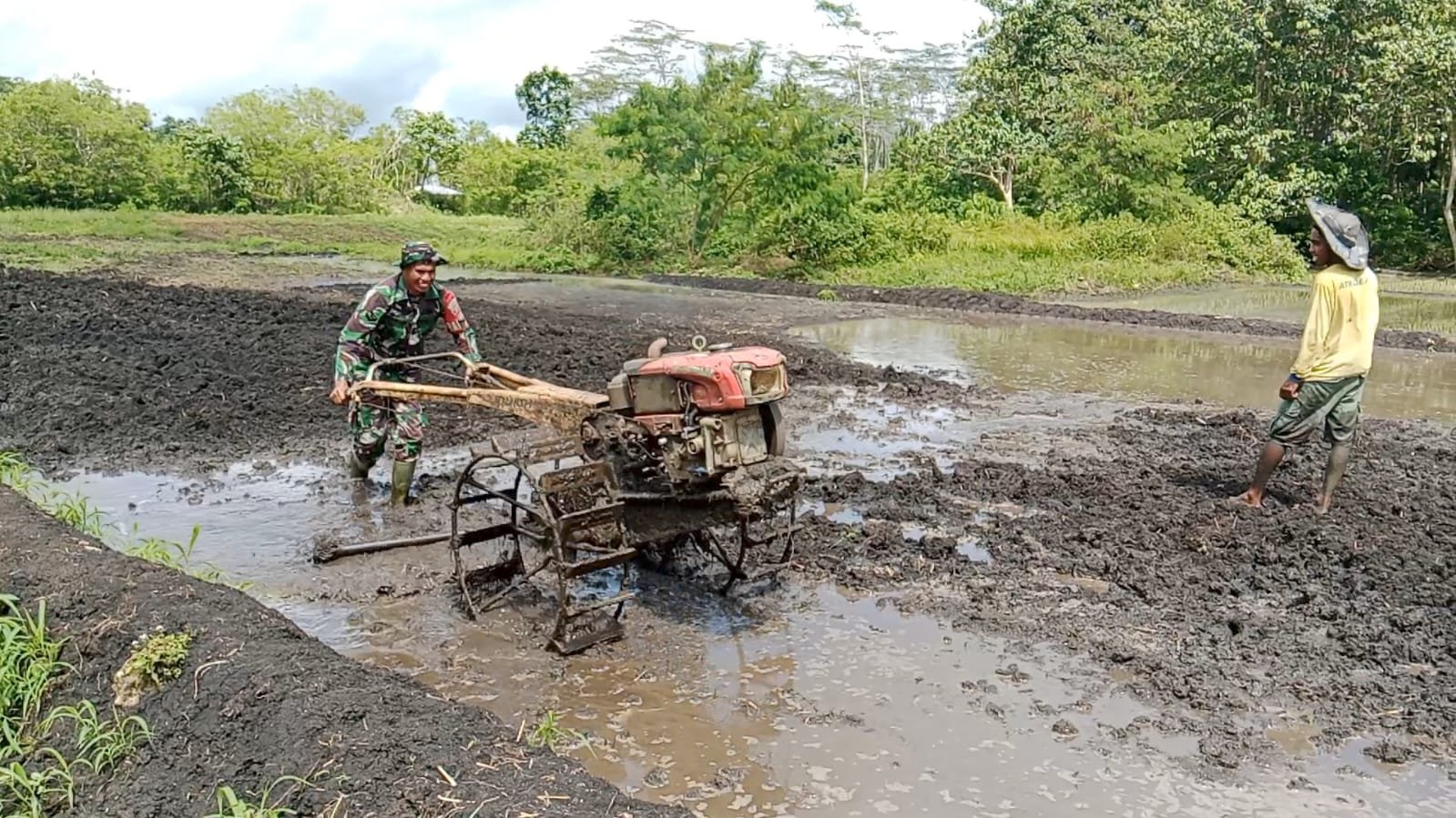 SUMBA BARAT, NTT – Dalam upaya mendukung program ketahanan pangan nasional, Sertu Fahrurrahman, Babinsa dari Koramil 01/Loli Kodim 1613/Sumba Barat, melaksanakan kegiatan komunikasi sosial (Komsos) bersama masyarakat pada Sabtu, 31 Januari 2026. Kegiatan ini berlangsung di Kelurahan Pada Eweta, Kecamatan Kota Waikabubak, Kabupaten Sumba Barat, di mana warga setempat sedang mempersiapkan lahan sawah untuk ditanami.