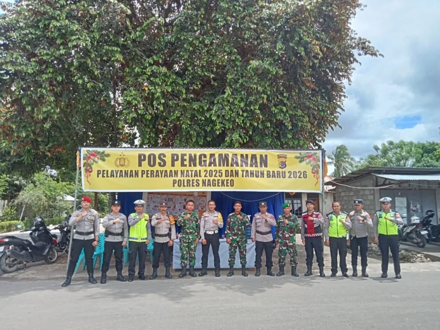 Nagekeo, 24 Desember 2023 – Dalam upaya memastikan keamanan dan ketertiban masyarakat selama perayaan Natal dan Tahun Baru (NATARU), Babinsa Koramil 1625-05/Aesesa, Serka Laudowik P. Hurek bersama timnya melaksanakan monitoring wilayah dan pemantauan di Posko NATARU 2. Kegiatan ini berlangsung di Kelurahan Danga, Kecamatan Aesesa, Kabupaten Nagekeo.