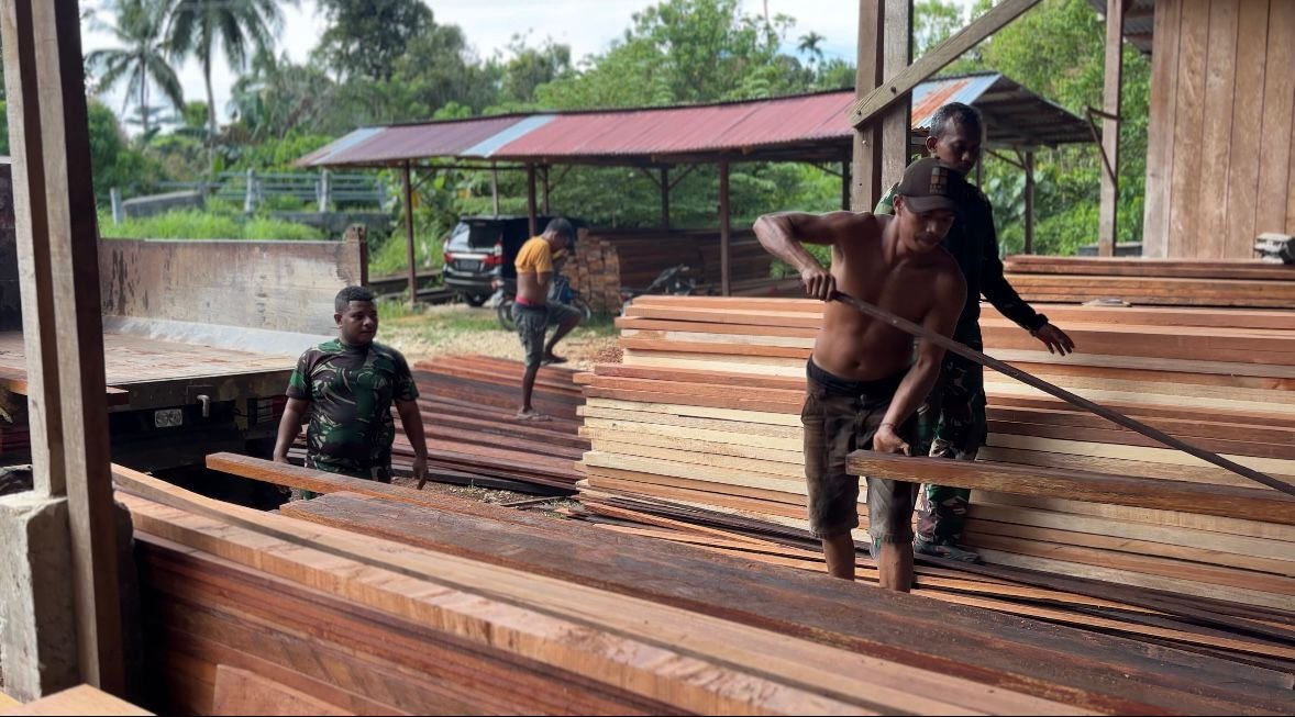 Kaimana, Rabu (11/02/2026) – Dalam suasana yang penuh semangat kebersamaan, anggota Kodim 1804/Kaimana berkolaborasi dengan masyarakat setempat untuk melakukan pergeseran kayu dari Somel Solata menuju Pelabuhan Coa, yang akan menjadi jalur distribusi menuju Kampung Sisir 1. Kegiatan ini berlangsung sebagai bentuk nyata gotong royong dalam mendukung percepatan pembangunan fasilitas di desa.