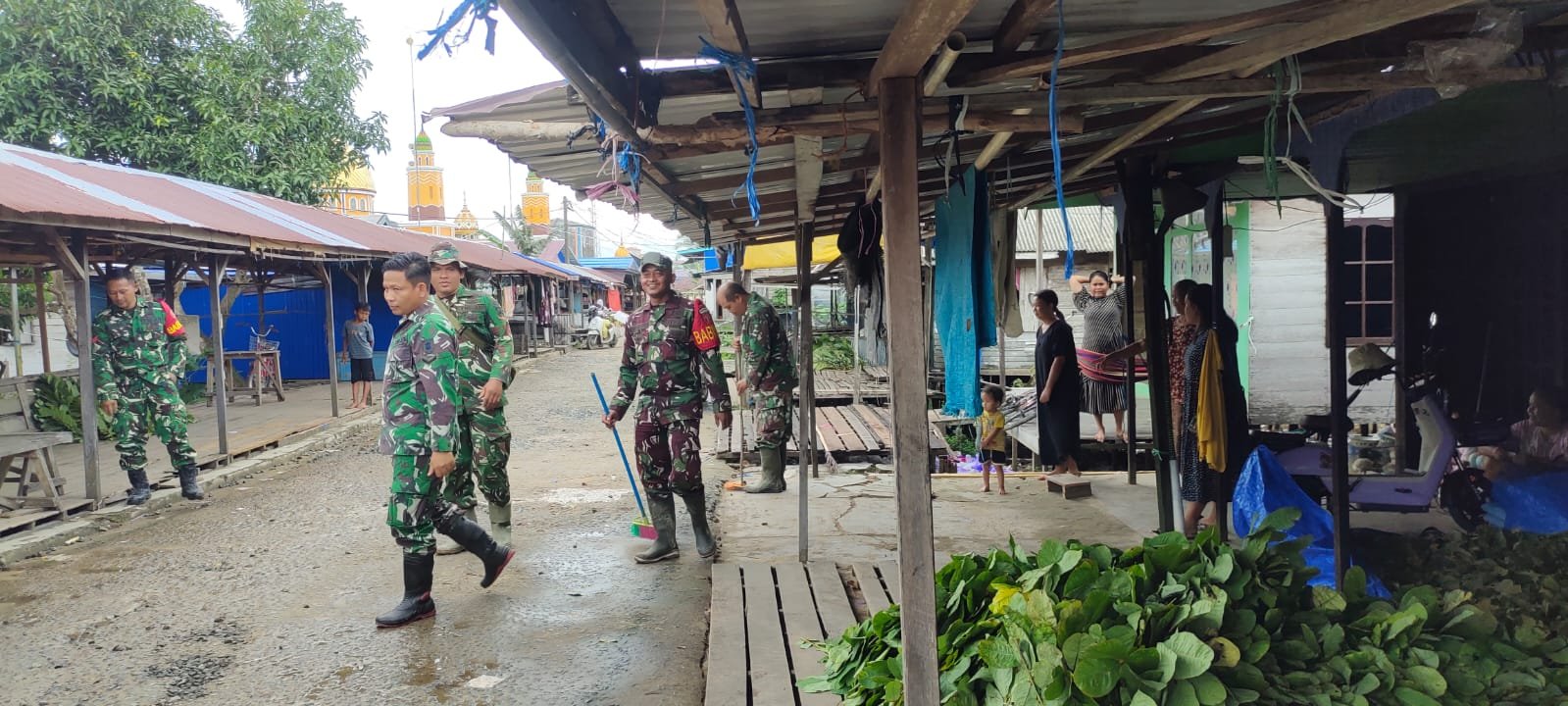 Barito Kuala — Dalam rangka meningkatkan kebersihan lingkungan dan mencegah potensi banjir serta penyebaran penyakit, Koramil 1005-02/Kuripan melaksanakan kegiatan karya bakti (karbak) terpadu berupa pembersihan pasar, selokan, dan penanaman pohon di wilayah sekitar Koramil. Kegiatan ini berlangsung pada Jumat, 23 Januari 2026, dengan melibatkan unsur TNI, aparat desa, dan masyarakat setempat.