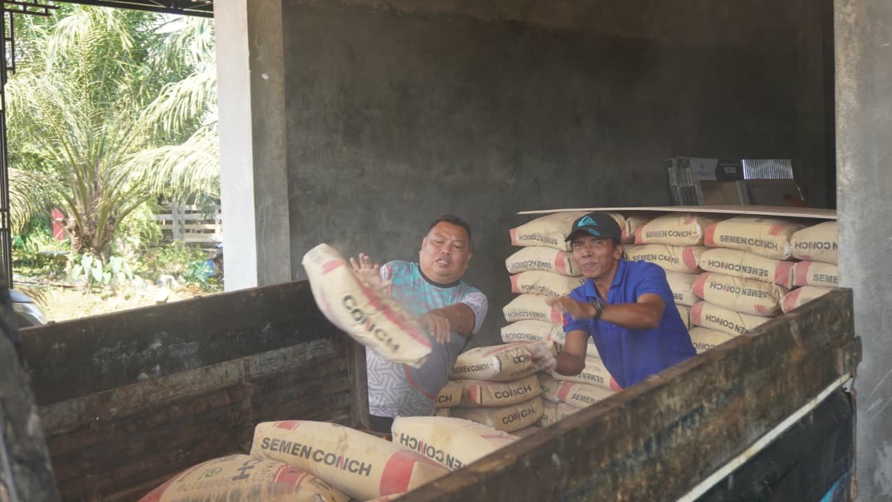 Sinergi TNI dan Masyarakat: Pengiriman Material Semen untuk Pembangunan MCK di Desa Tri Buana